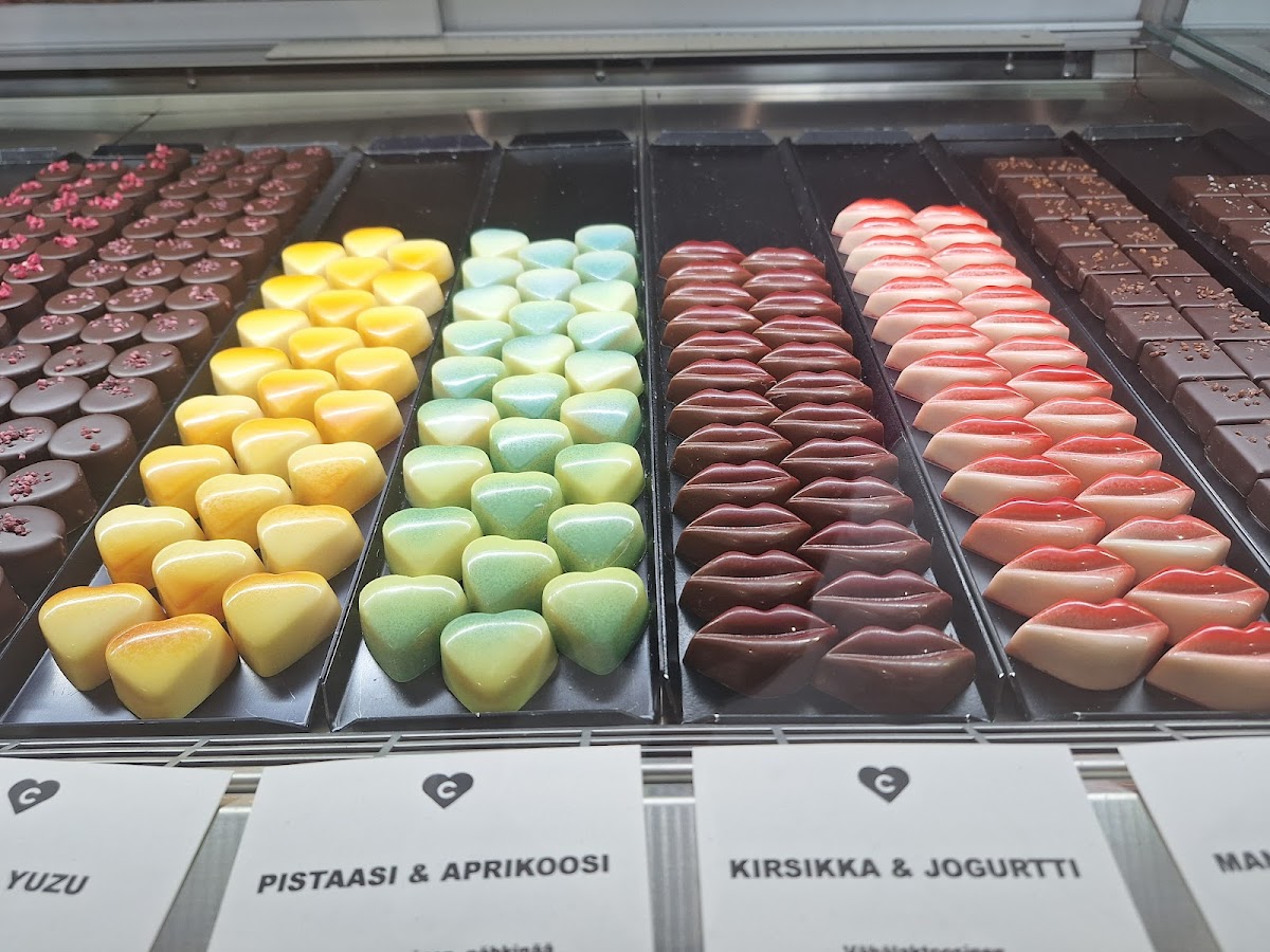 Glutenfree Options A delicatessen café with a lovely selection of handmade chocolates, ice cream, desserts and an absolute must-visit for connoisseurs of the good things in life. There's a variety of delicious flavors for all taste buds If the weather permits, it is possible to sit outside and enjoy the peaceful life in Kronohagen /Kruunuhaka district. Despite its central location of Helsinki, the area is anyway separated from the city rush. It's not a typical tourist destination so if you are looking for a nice oasis for a coffee break, with a small delicacy snack, away from the big city noise, this is the place! The handmade Chjoko chocolate is also a perfect gift idea for those looking for something special with a story to give away as a present!